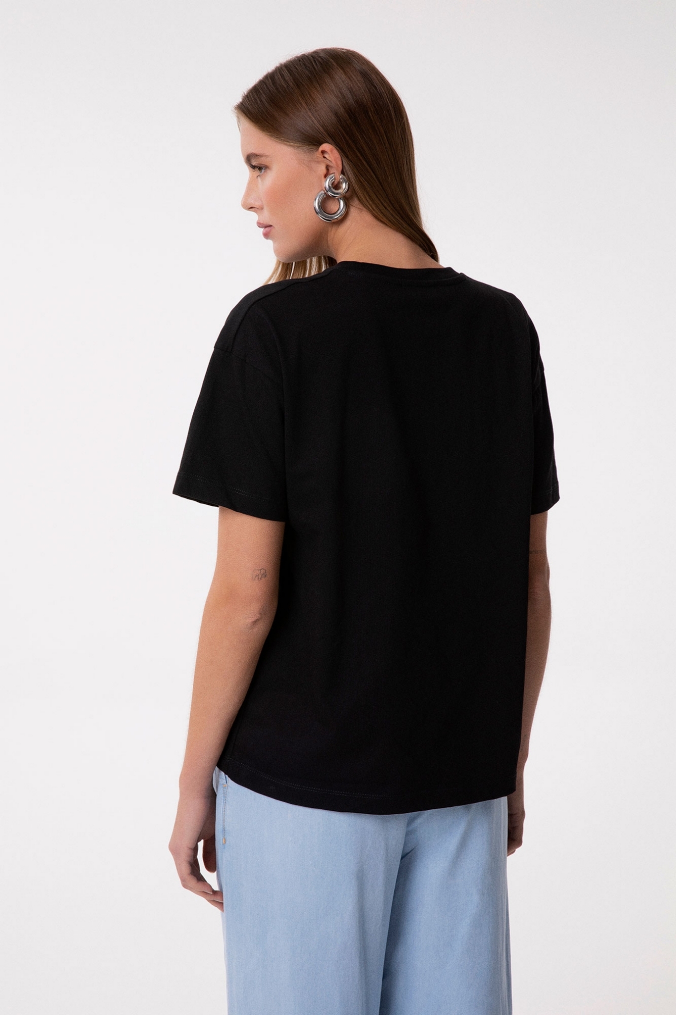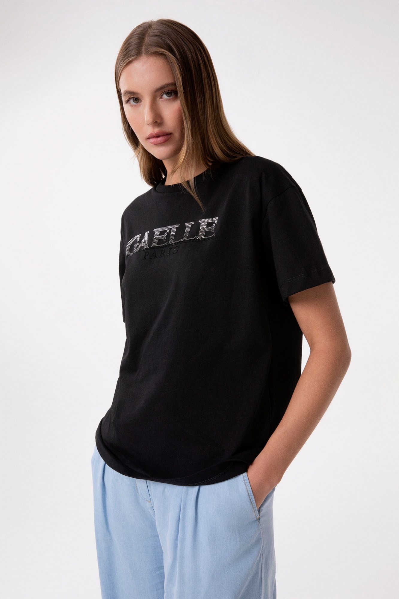 T-Shirt Paricollo Mezza Manica Con Strass Termo