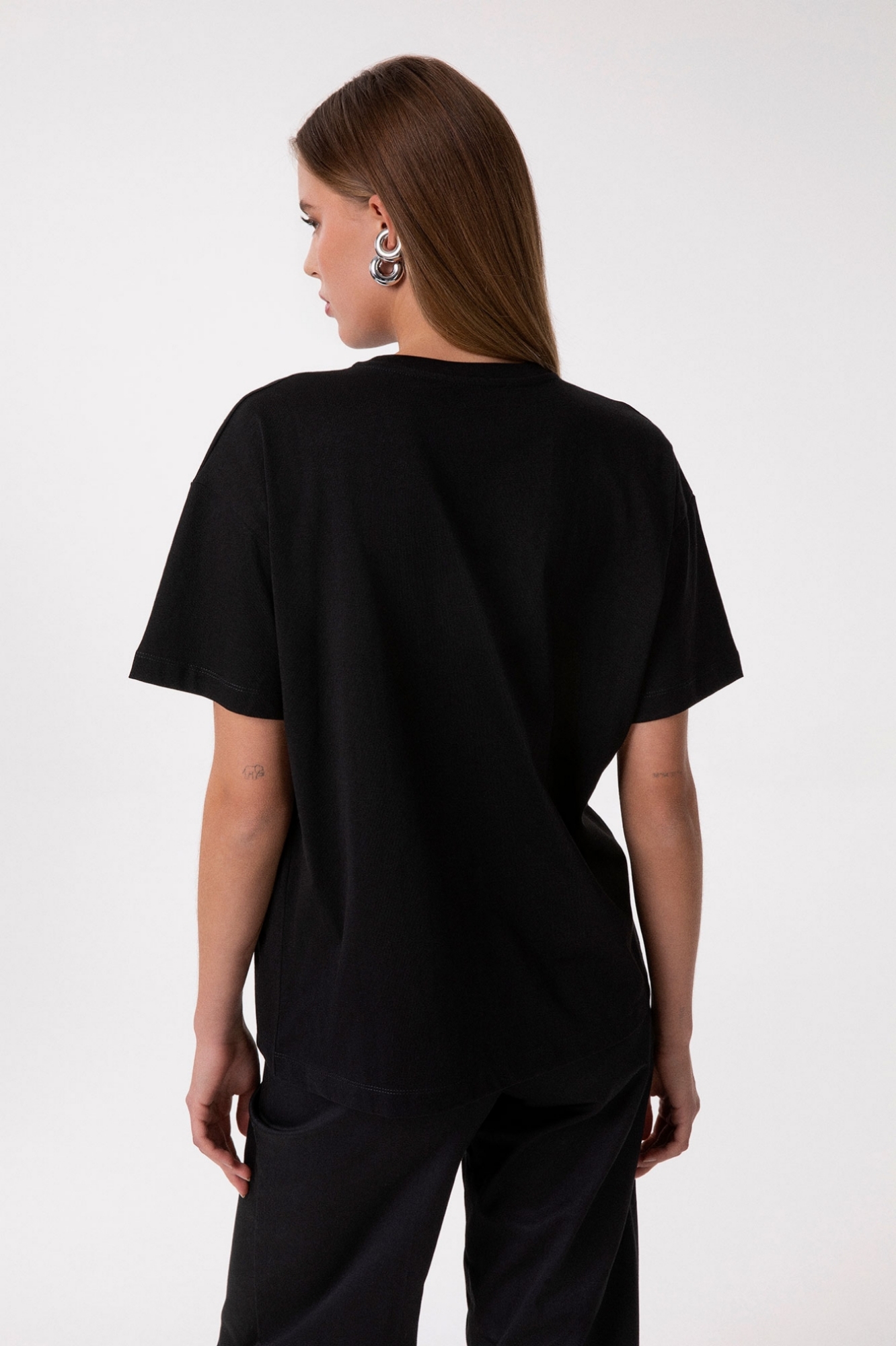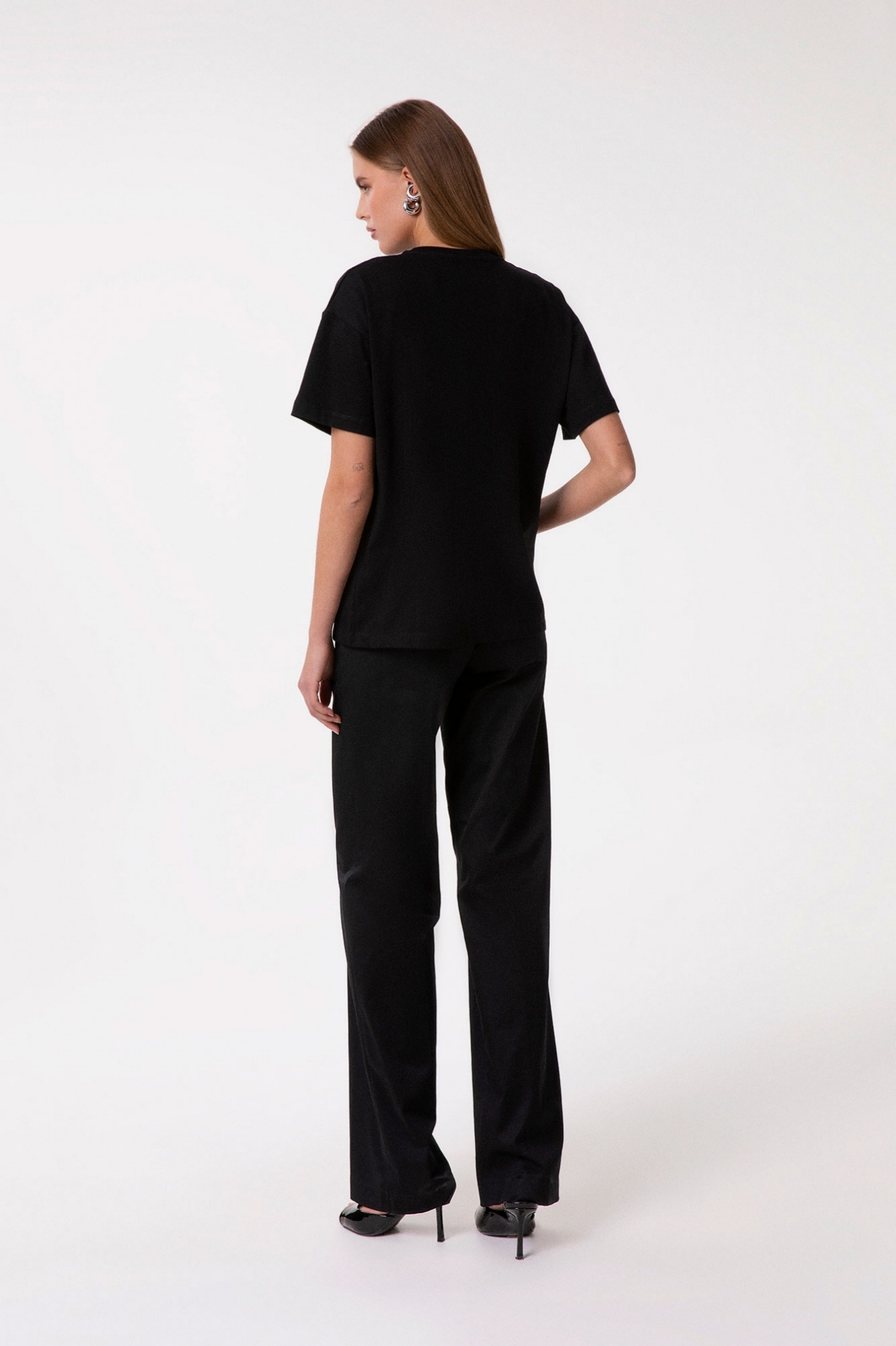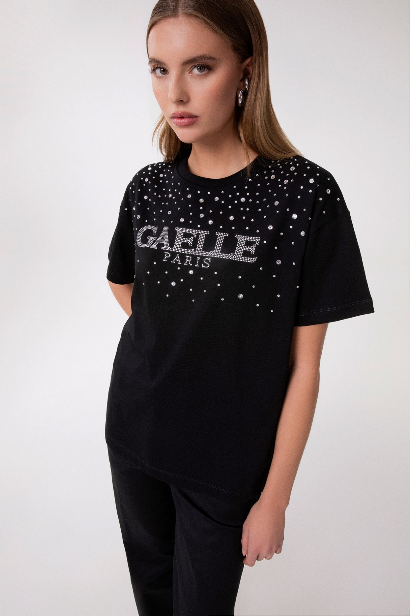 T-Shirt Paricollo Mezza Manica In Jersey Con Pioggia Strass