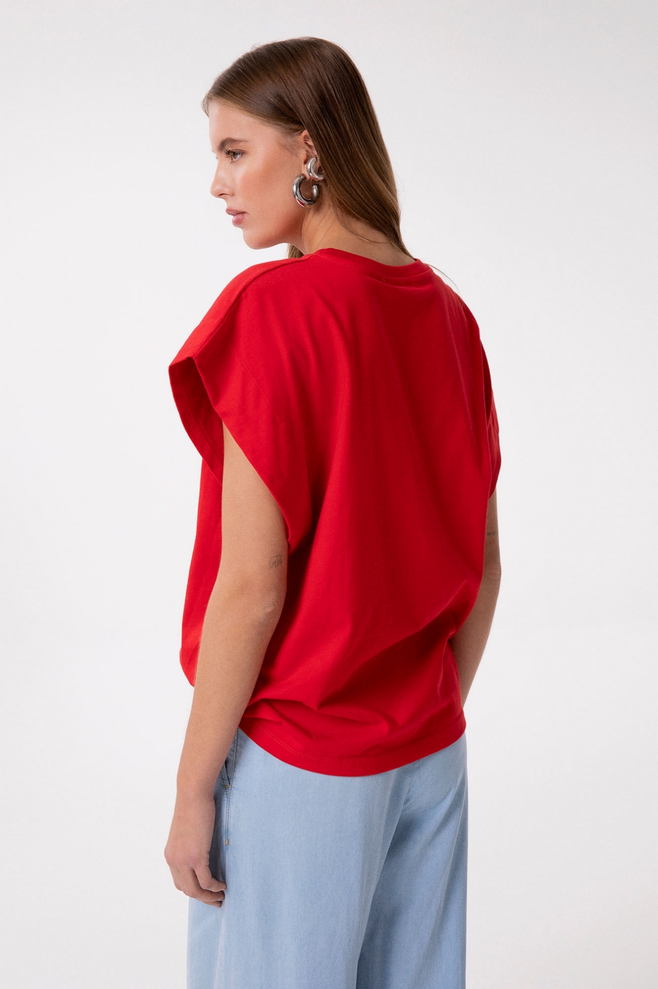 T-Shirt Paricollo Smanicata In Jersey Con Ricamo